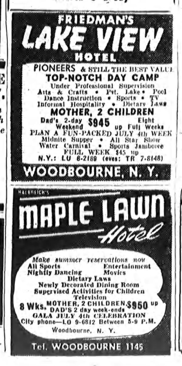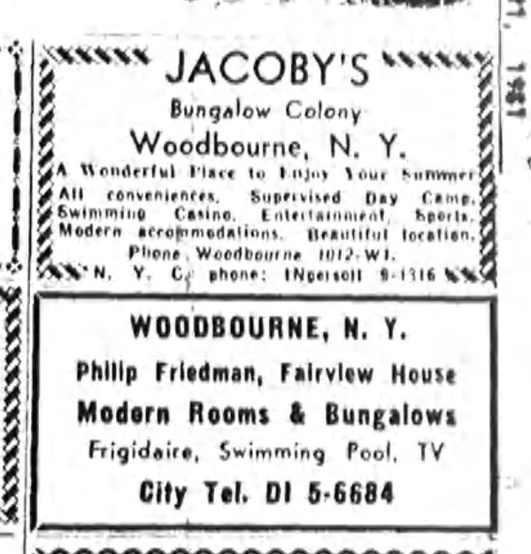 Woodbourne dates to the 19th century as a farm community. Farmers began taking in boarders after the opening of the O&W Railroad in 1873. By the 20th century, the hamlet was a hub for kuchaleins. Yiddish for “cook alone,” they were shared houses where travelers cooked their own meals. By the 1940’s, they evolved into bungalow colonies—private cabins with shared entertainment and recreational facilities—offering more affordable options for working and middle-class families compared to resorts. Jacoby’s was a hilltop paradise with ceramic studios, costume balls and a full children's orchestra. Lansman's is revered for its day camp.