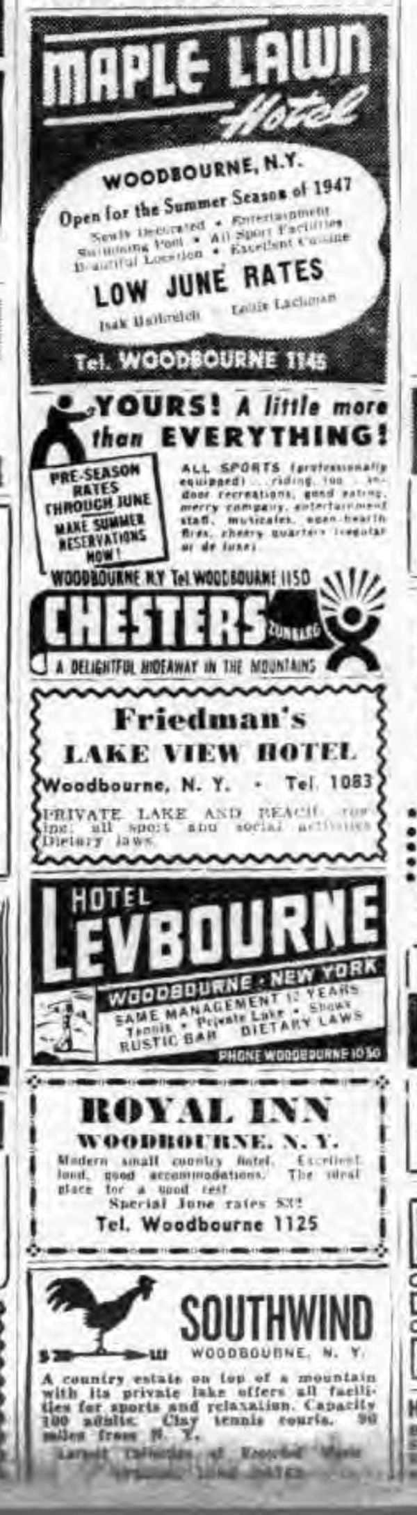 Woodbourne’s legacy includes about 27 resorts and 52 bungalow colonies such as Furman’s, Happy Hamlet, Salhara, Schlifkin’s, Shady Maples, South Wind and Zukor’s.